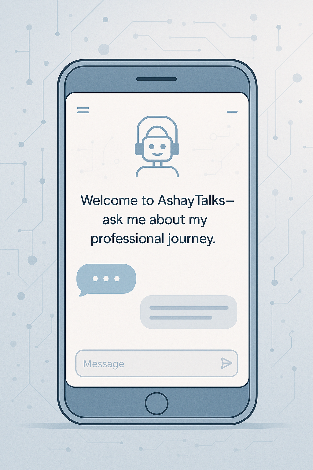 I developed AshayTalks to save time during hiring conversations and to offer a more interactive way to showcase who I am professionally. It’s continuously evolving as I add new projects, skills, and experiences, making it a living reflection of my growth as a Software Engineer and Data Scientist.